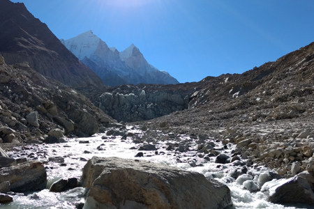 Tapovan(4463 M) known for its beautiful meadows that encircle the base of the Shivling peak. The meadow is a picturesque spot with a large area replete with wildflowers. Herds of Bharal (blue mountain goats) are a common sight from here, and are often spotted on the craggy mountain faces. On the far side of the glacier the Bhagirathi I, II, III (6454 M), provide an equally impressive sight. It is because of the isolation and serenity of this spot that Sadhus and ascetics choose this spot for extended meditation during the long summer months. Arrive Tapovan and camp. Dinner and overnight stay in camp.